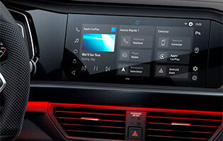 O sistema Infotainment VW Play permite conectividade avançada com os smartphones por meio do App-Connect. Com tela colorida sensível ao toque (touchscreen) de 10,1”, oferece ampla interatividade, com várias opções de informação, entretenimento, configuração do veículo por meio da tela, como o perfil de condução, além de visual moderno e tecnológico.