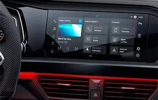 O sistema Infotainment VW Play permite conectividade avançada com os smartphones por meio do App-Connect. Com tela colorida sensível ao toque (touchscreen) de 10,1”, oferece ampla interatividade, com várias opções de informação, entretenimento, configuração do veículo por meio da tela, como o perfil de condução, além de visual moderno e tecnológico.