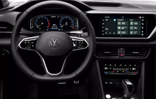 O painel digital da Volkswagen permite controlar diversos sistemas do Taos. Ele tem tela de 10,25” e o motorista pode escolher quais informações serão mostradas. Você pode escolher, por exemplo, exibir o computador de bordo, dados do veículo ou a música que está tocando no seu VW Play.